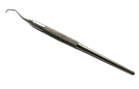 • Ostra, zakrzywiona końcówka w kształcie haczyka jaką posiada dłubak (wydzierak) ułatwia przebicie niepotrzebnego elementu folii oraz jego szybkie usunięcie