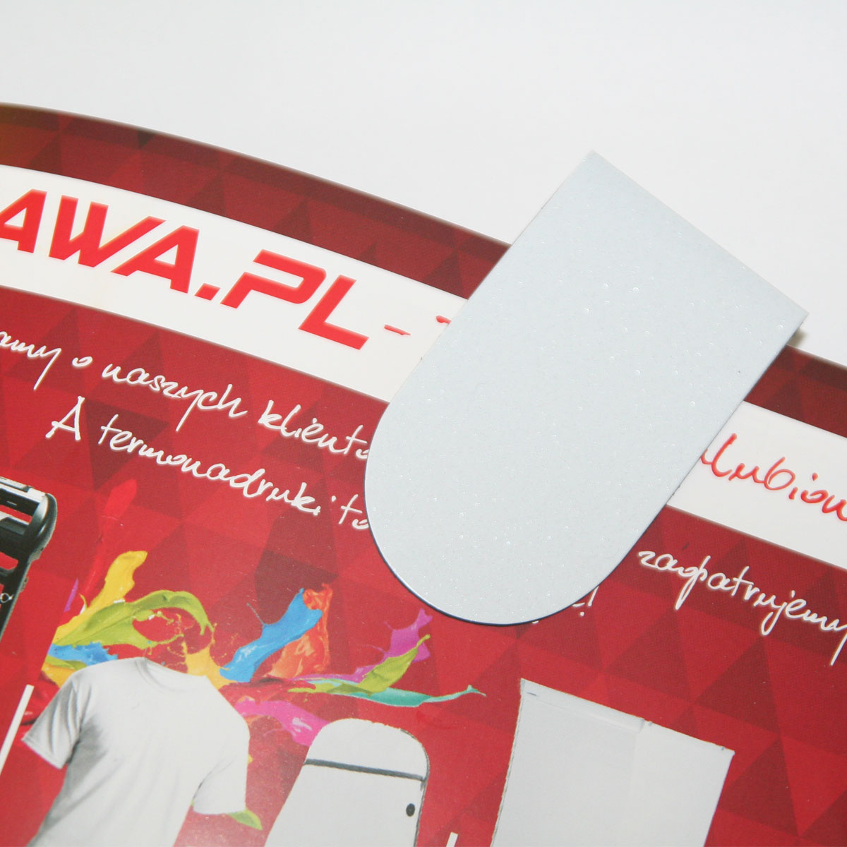 • Składana zakładka do książki z magnesem z jednej strony jest biała i powleczona warstwą poliestru - po tej stronie możliwe jest znakowanie metodą sublimacji