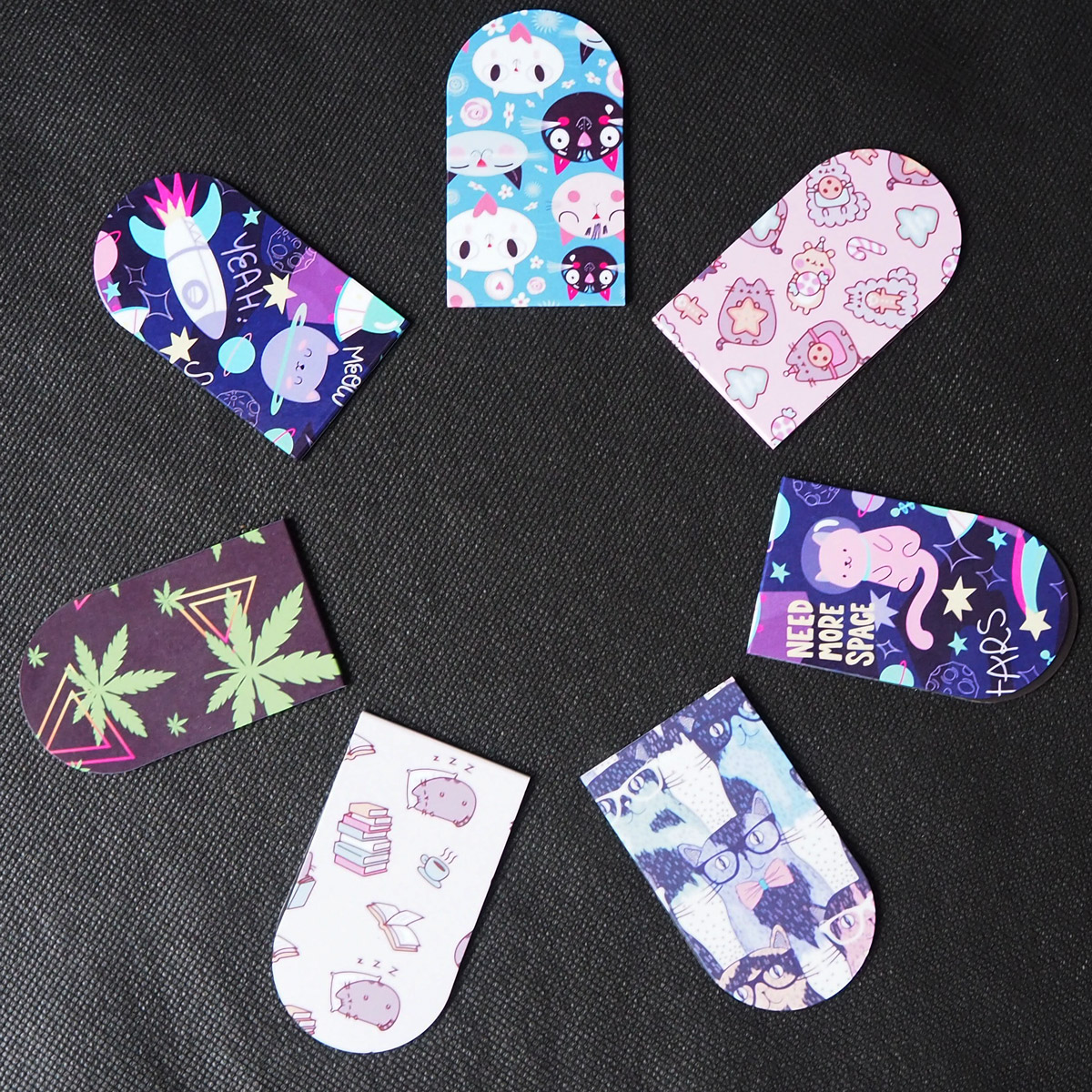 • Zakładki indeksujące z magnesem, do nadruków, składa się w połowie długości - można używać ich rozłożonych lub umieścić kartkę między magnesami po złożeniu na pół