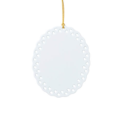 Biała, gładka zawieszka - owalna, z koronkowymi obrzeżami do sublimacji lub grawerowania