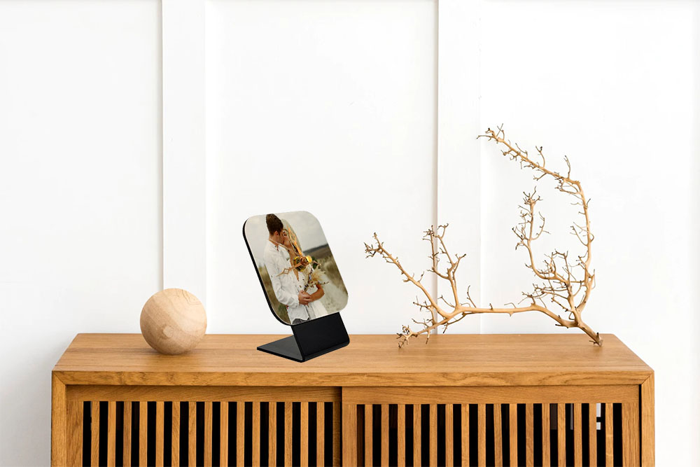 • Zegarek do nadruku wykonano z MDF, a podstawkę z plastiku