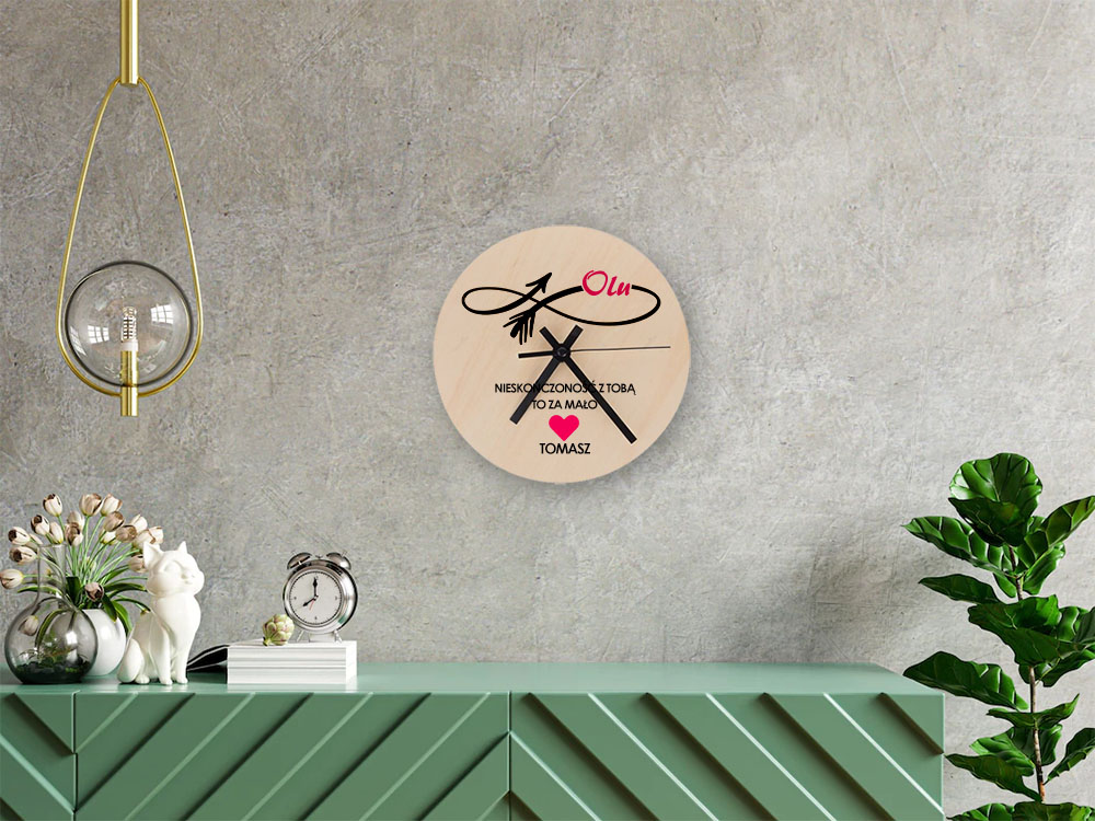 • Wiszący zegar z własnym nadrukiem to oryginalny i praktyczny pomysł na prezent - na zegarze można umieścić ulubione zdjęcie, śmieszną grafikę, miły tekst czy inny motyw według własnego projektu