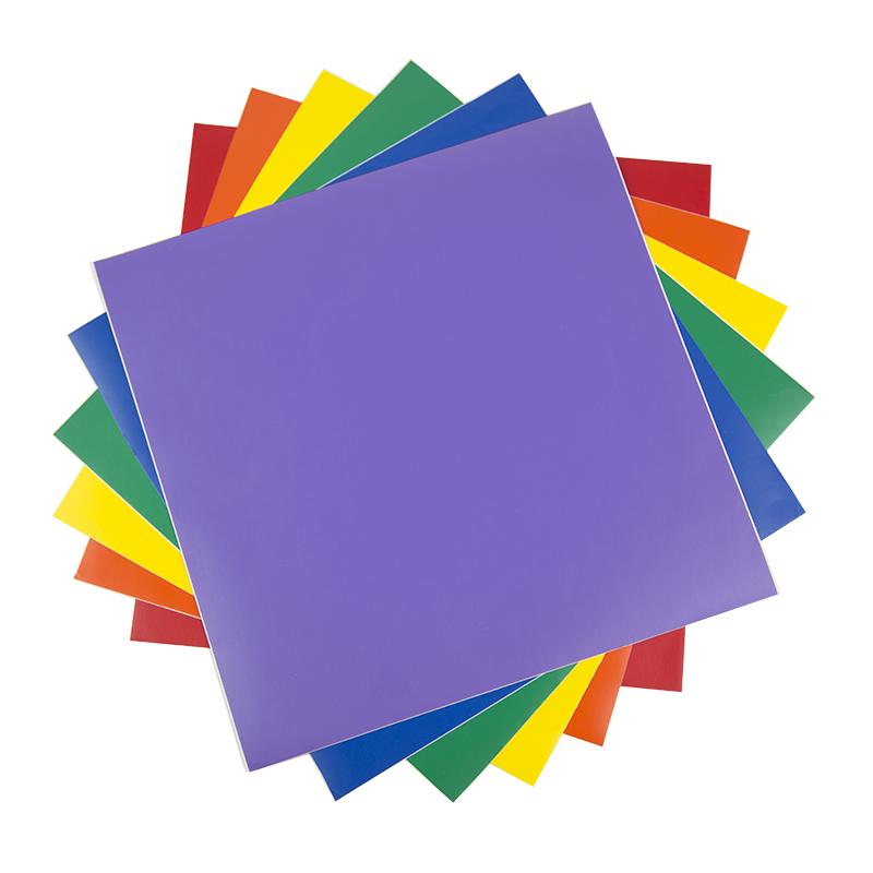 Zestaw kolorowych folii (6 arkuszy w kolorach: czerwony, pomarańczowy, żółty, zielony, niebieski, fioletowy) w rozmiarze 30.5 cm x 30.5 cm (12" x 12").