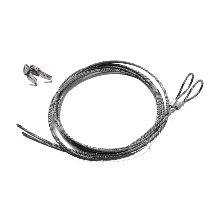 Zestaw dwóch stalowych linek i zaczepów do podwieszania dwustronnych ramek zatrzaskowych do sufitu. Linka umożliwia podwieszanie obiektów na dowolnej wysokości. Przystosowane do montażu lekkich ram (np. dwustronne ramy wiszące)
