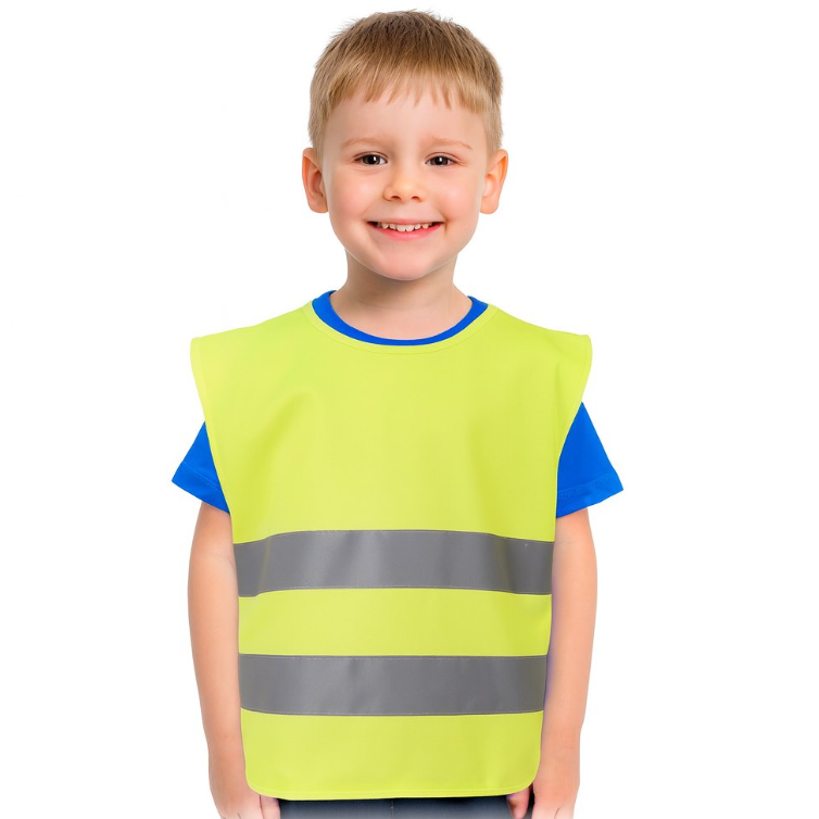 Poliestrowa kamizelka drogowa do znakowania, może służyć jako gadżet, upominek albo akcesoria bezpieczeństwa np. dla przedszkolaków i dzieci szkolnych.